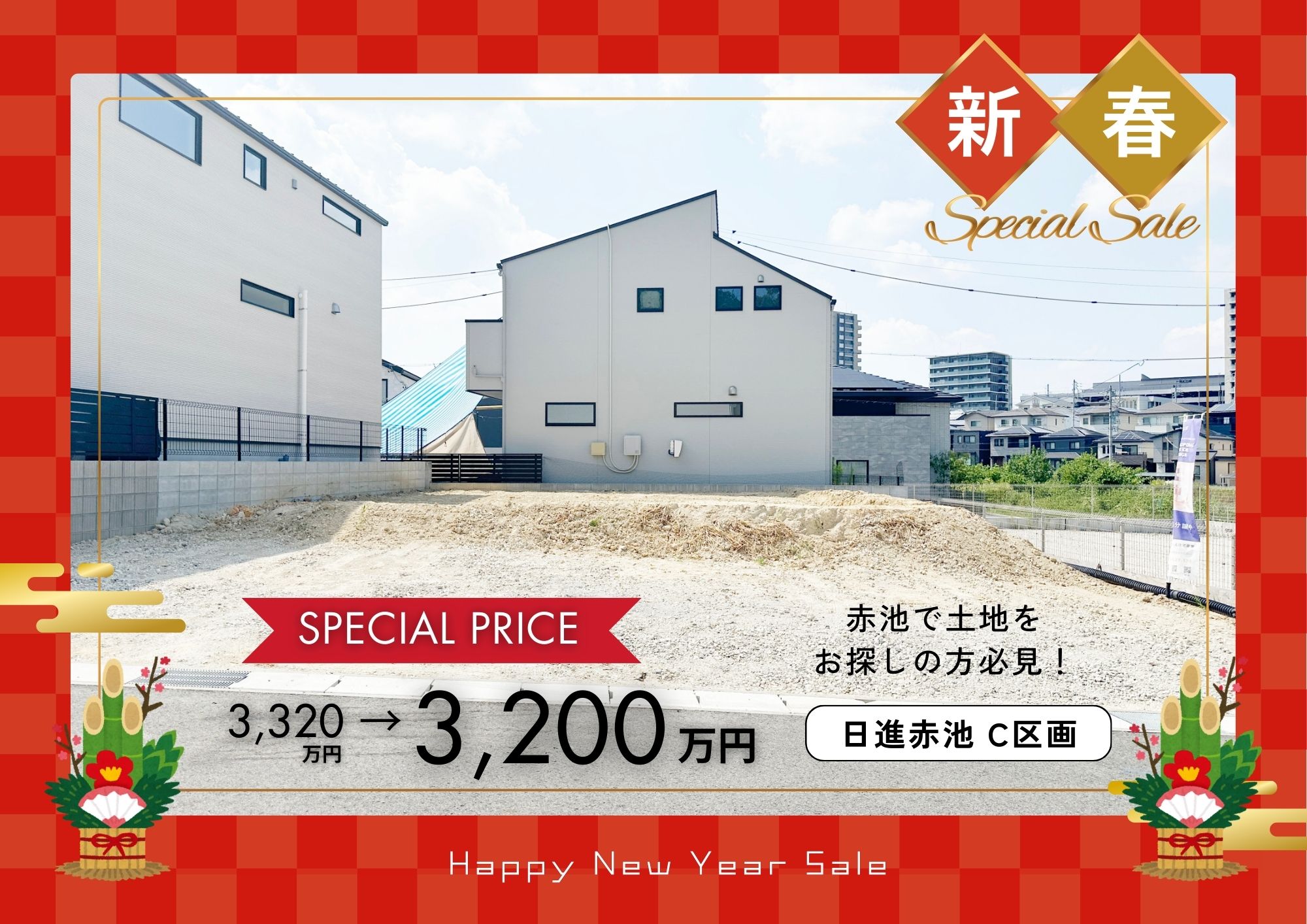 | 価格 | C区画:3,320万円 ⇒ 新春特別価格 3,200万円 D区画:済 E区画:済 |