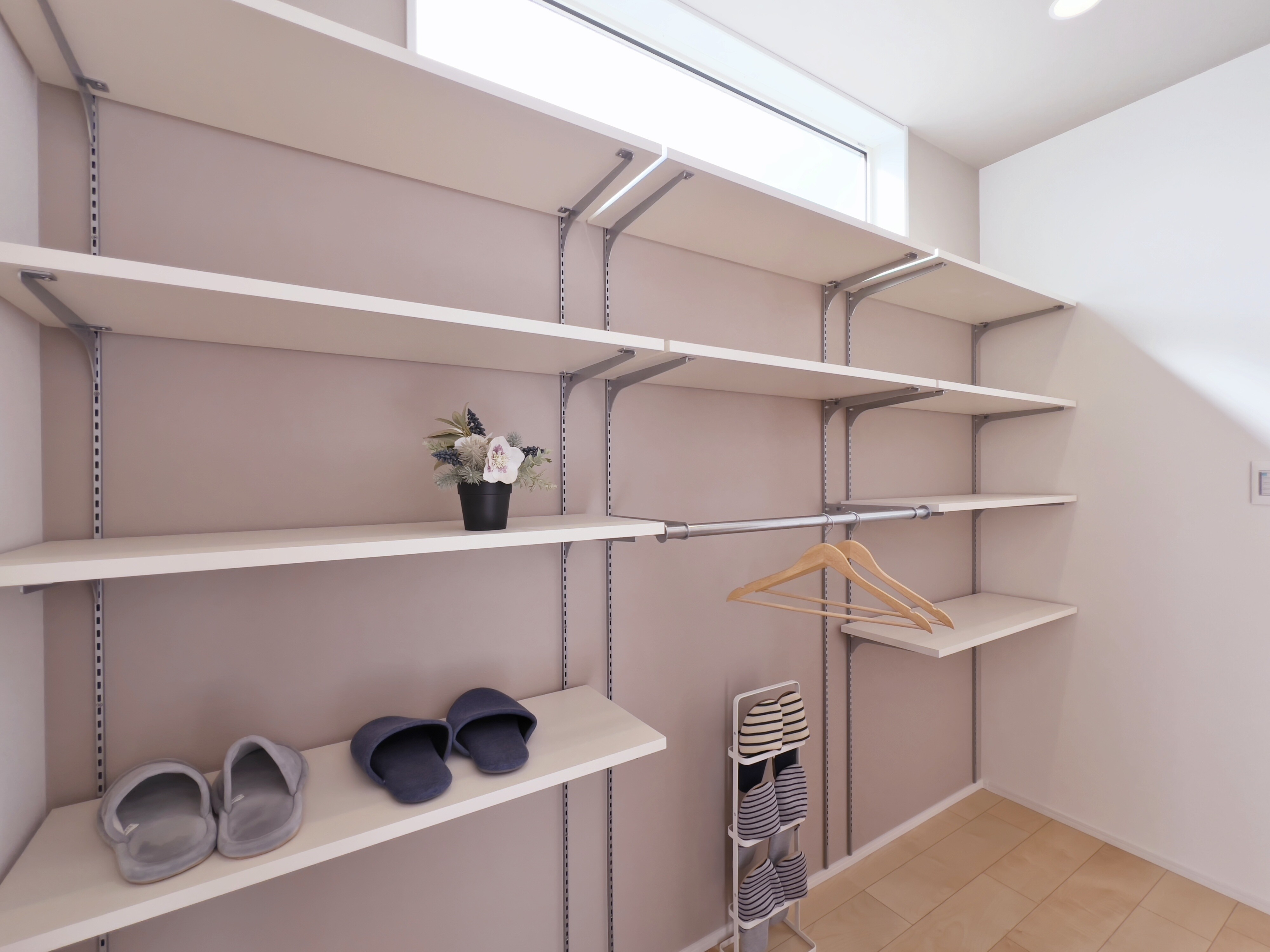 (C棟)大容量の可動棚を備えた、機能的なシューズクローク...