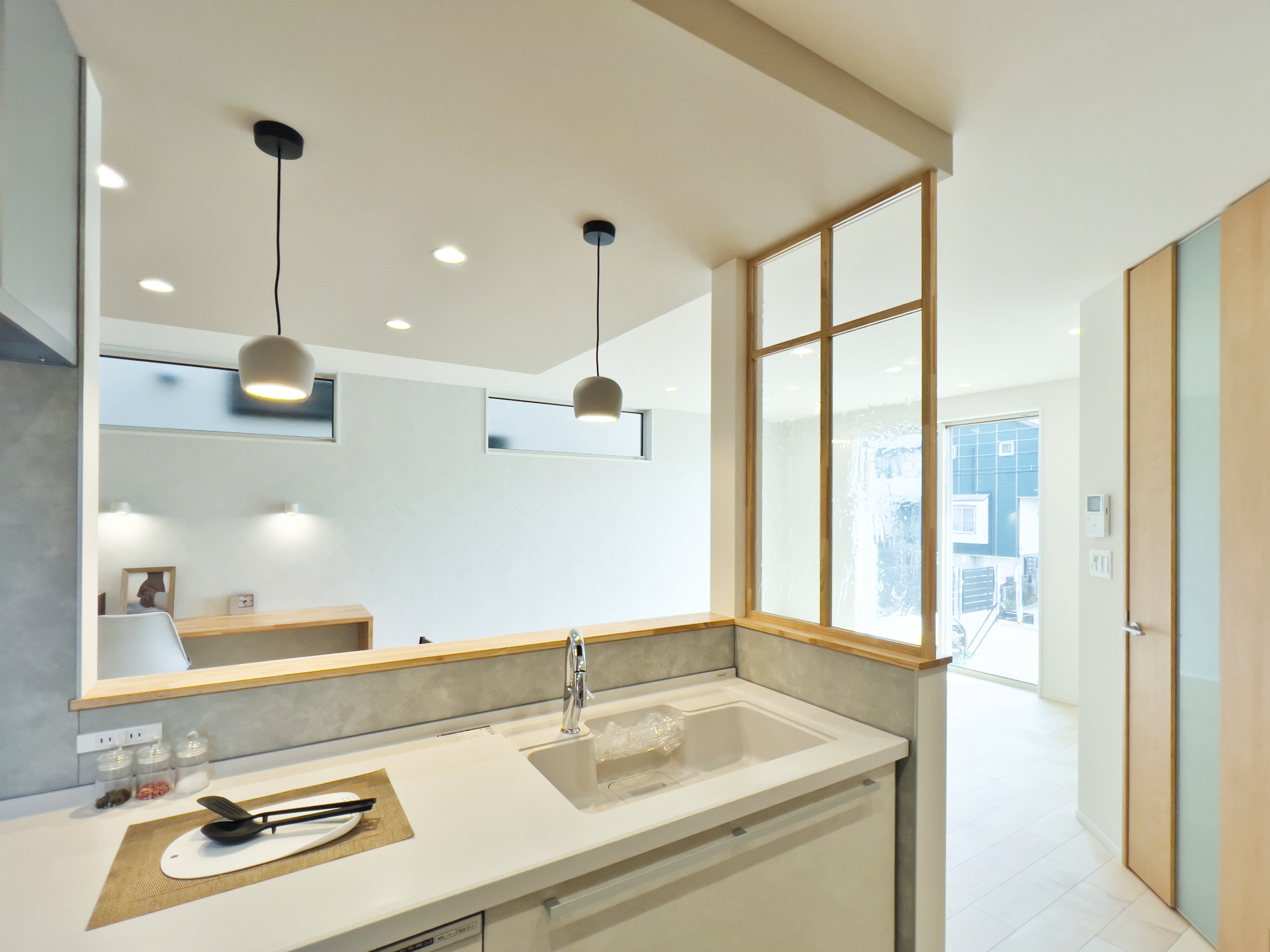 (C棟)キッチンの造作のガラスパーティション