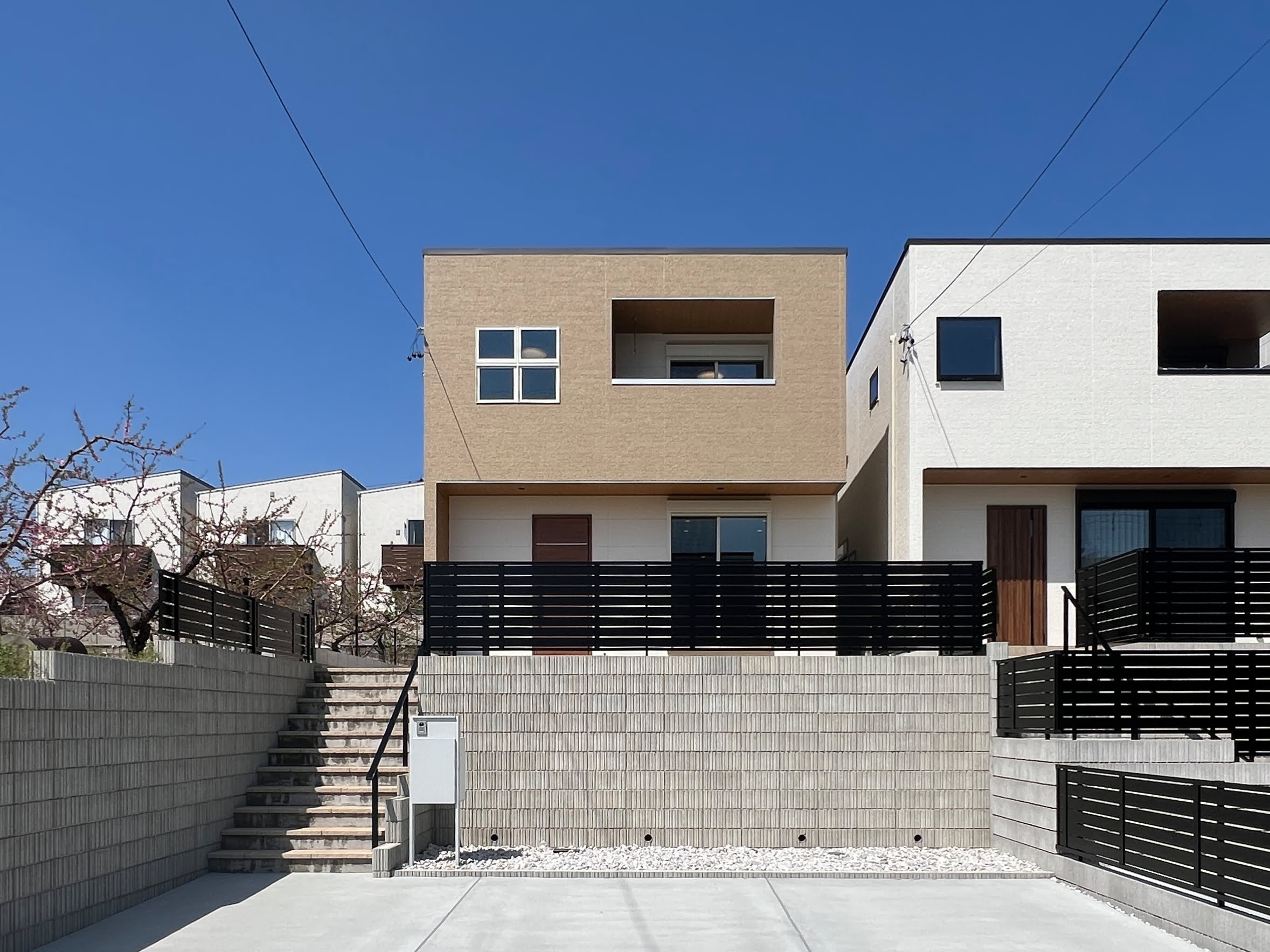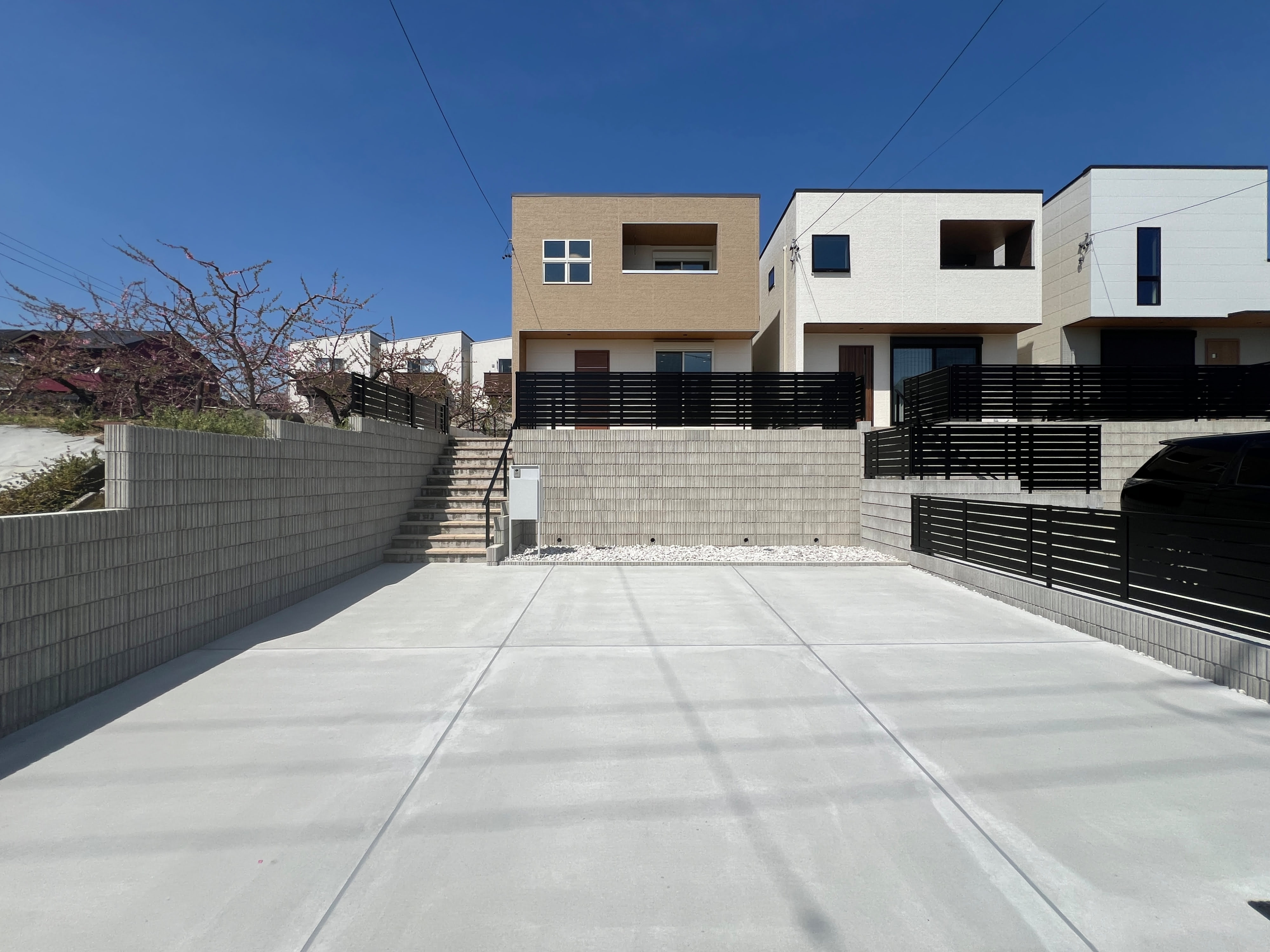 C棟:外観写真 駐車場から階段で上がることで、風景が変わ...