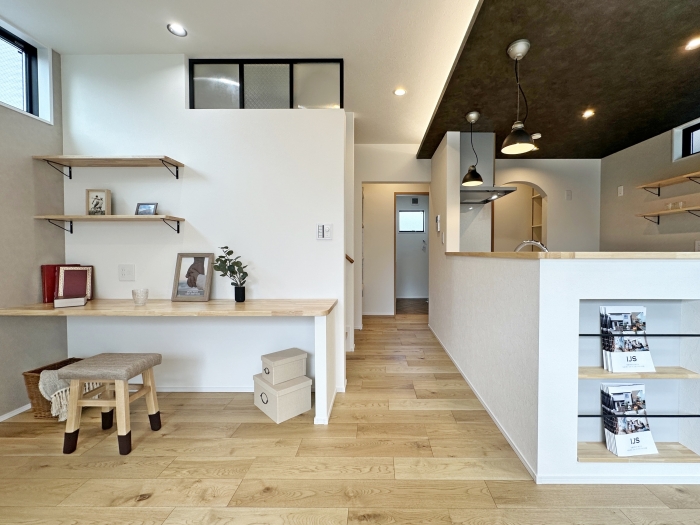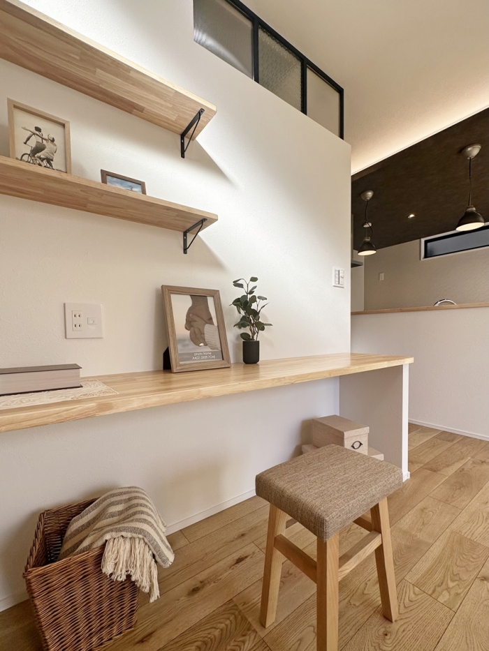 LDKの一角にはカウンターデスクを設置し、在宅ワークやお子様の勉強スペースとしても活用できます。