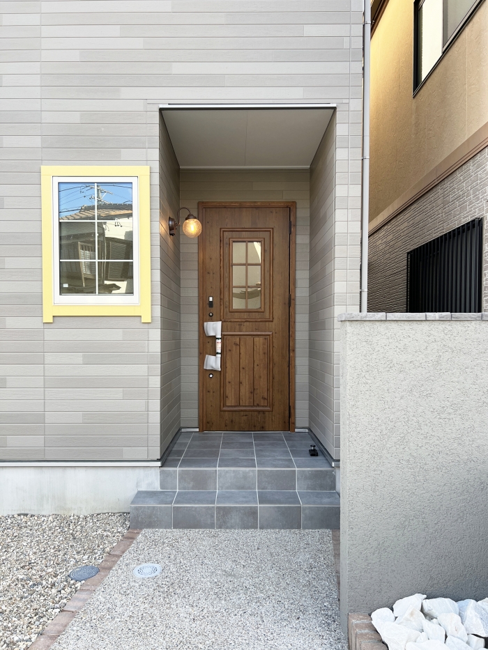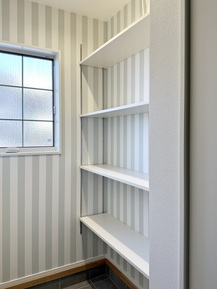 玄関ホールには、やわらかな印象のR開口ニッチ棚を設置。お気に入りの絵や花を飾れば、お客様を迎える玄関の素敵なアクセントに。空間にさりげない個性と彩りを添えます