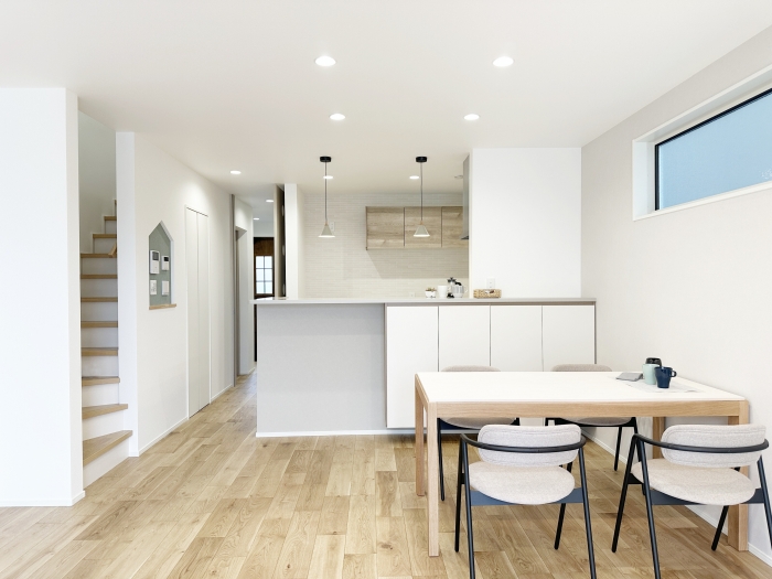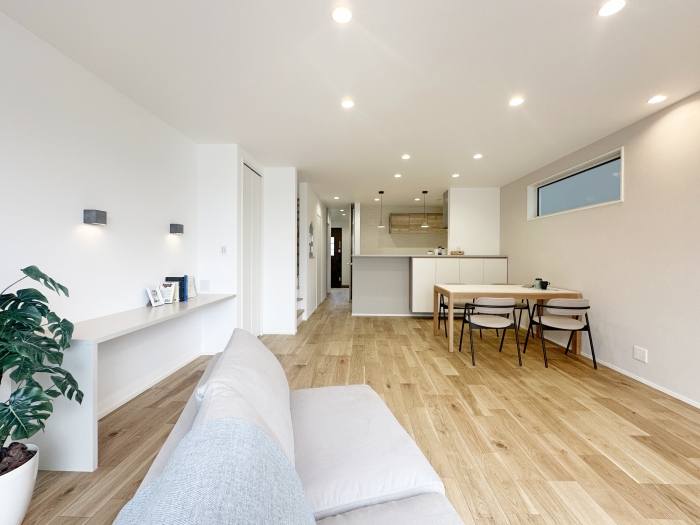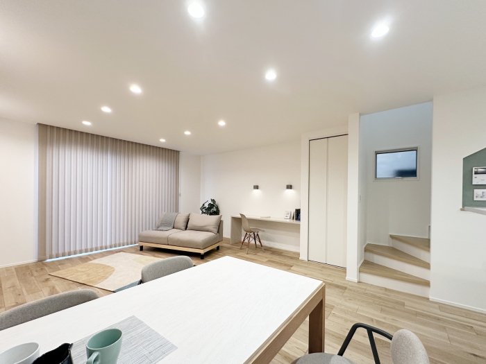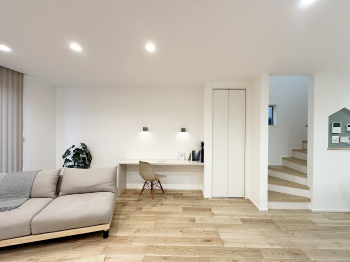 リビング、ダイニング、ワークスペースの配置は家族のコミュニケーションしやすい様に配慮